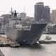 Des images de la marine montrent que le navire, totalement penché sur un côté, à moitié englouti par les eaux.