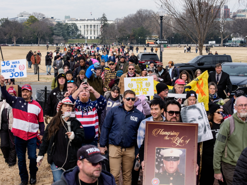 Les manifestants rassemblés devant la Maison-Blanche, là où Donald Trump avait prononcé un discours enflammé le 6 janvier 2021, se sont ensuite dirigés vers le Capitole, reprenant la route qu'avaient prise les assaillants cinq ans auparavant.