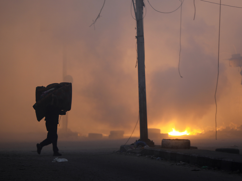 Tôt le matin, les avions de guerre israéliens ont largué des messages appelant les civils à quitter la zone d'al-Jalaa, tout en envoyant des SMS à la ronde, poussant de nouveau sur les routes des familles souvent déjà déplacées plusieurs fois par les bombardements, ininterrompus sur le petit territoire côtier depuis le 7 octobre.