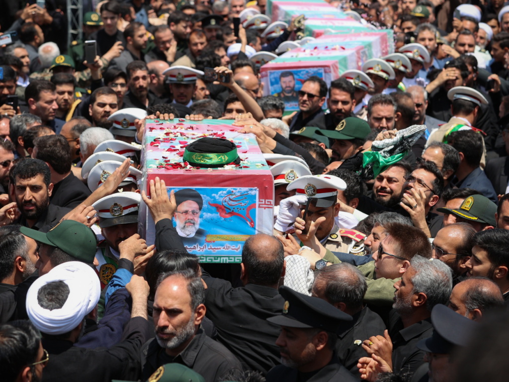 La veille à Téhéran, une foule évaluée à plus d'un million de personnes par les médias officiels s'était rassemblée dans le centre pour rendre un dernier hommage au président, en présence du guide suprême, l'ayatollah Ali Khamenei, entouré des plus hautes autorités du pays, notamment le président par intérim Mohammad Mokhber.