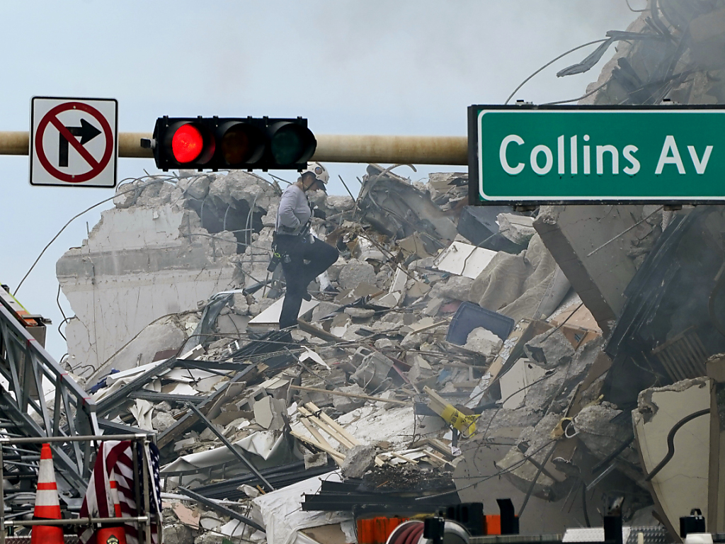 Pompiers et unités cynophiles s'activent ainsi toujours dans les ruines de cet immeuble situé au sein du complexe Champlain Towers South dans la ville de Surfside au sud-est des Etats-Unis. Des bruits ont été entendus émanant des gravats, sans que les sauveteurs soient sûrs qu'ils étaient d'origine humaine.