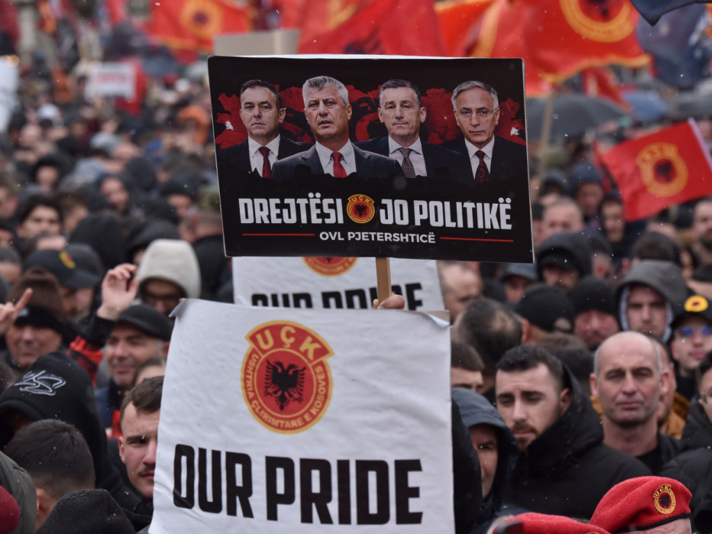 Ce rassemblement, organisé le jour où le Kosovo célèbre son indépendance, proclamée en 2008 et jamais reconnue par la Serbie - dont ce territoire faisait partie -, coïncide avec les plaidoiries finales devant les Chambres spécialisées sur le Kosovo, une cour qui juge depuis trois ans l'ex-président kosovar Hashim Thaçi et trois autres accusés.