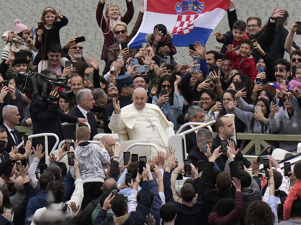 Quelques minutes plus tôt, à bord de sa "papamobile", François, souriant et apparemment en bonne forme, a longuement salué et béni les quelque 60'000 fidèles présents, sous les acclamations d'une foule massée derrière les barrières, dans les allées de la place Saint-Pierre.