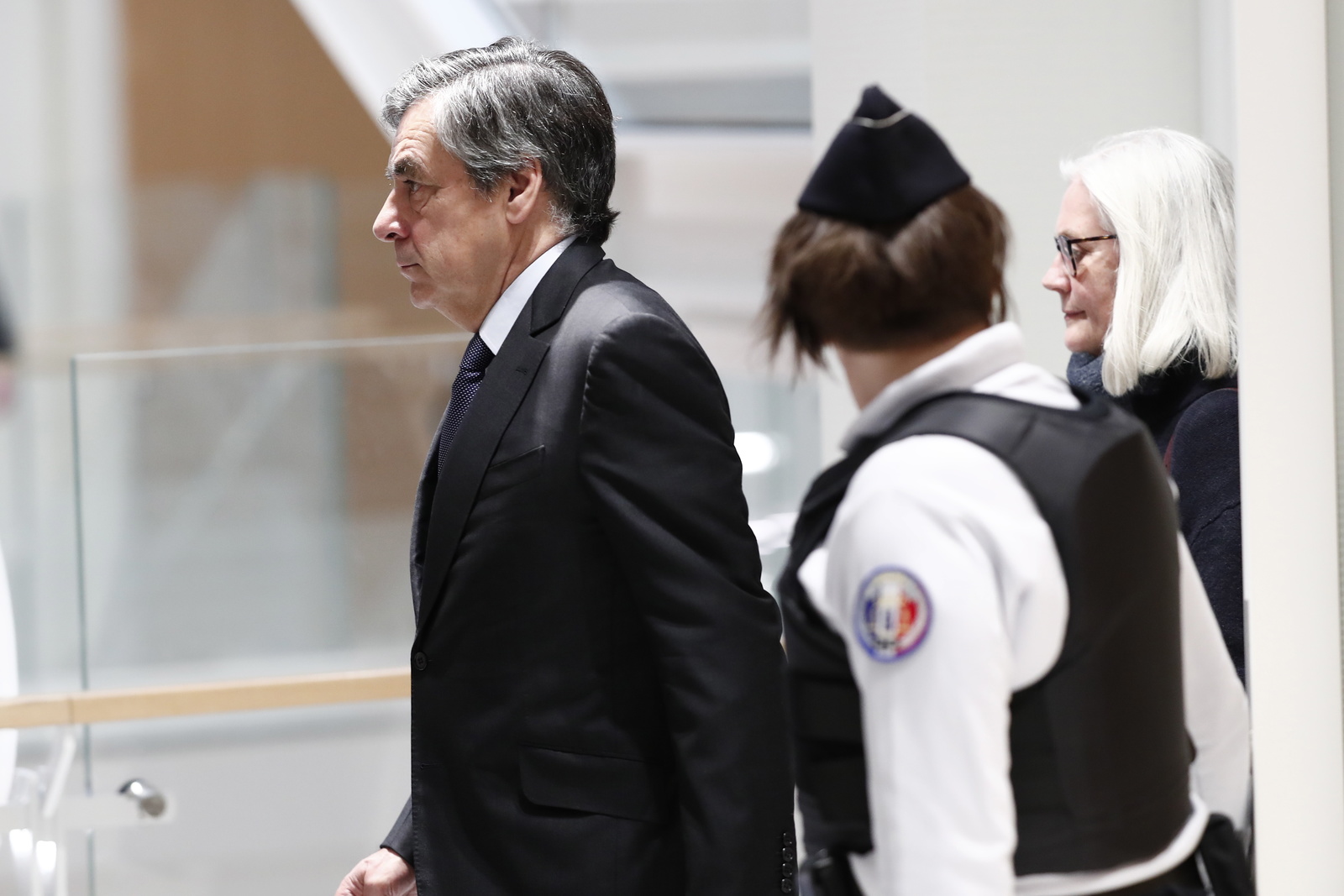 Costume bleu nuit, cheveux poivre et sel, celui qui fût le chef du gouvernement entre 2007 et 2012, aujourd'hui âgé de 67 ans, est entré dans la salle d'audience sans s'exprimer face à la presse avec sa femme, 66 ans, courts cheveux argentés et masque bleu.