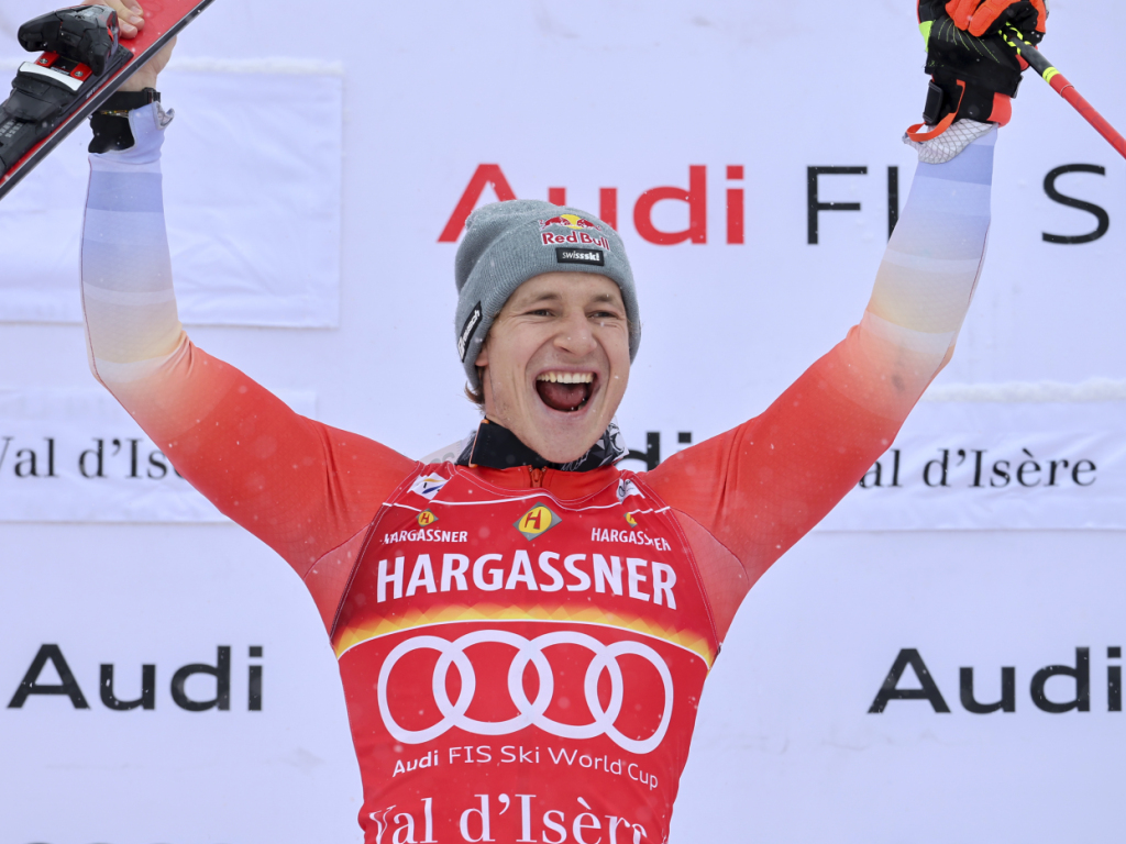 Marco Odermatt espère reproduire le même geste que l'an dernier à Val d'Isère (© KEYSTONE/AP/MARCO TROVATI)