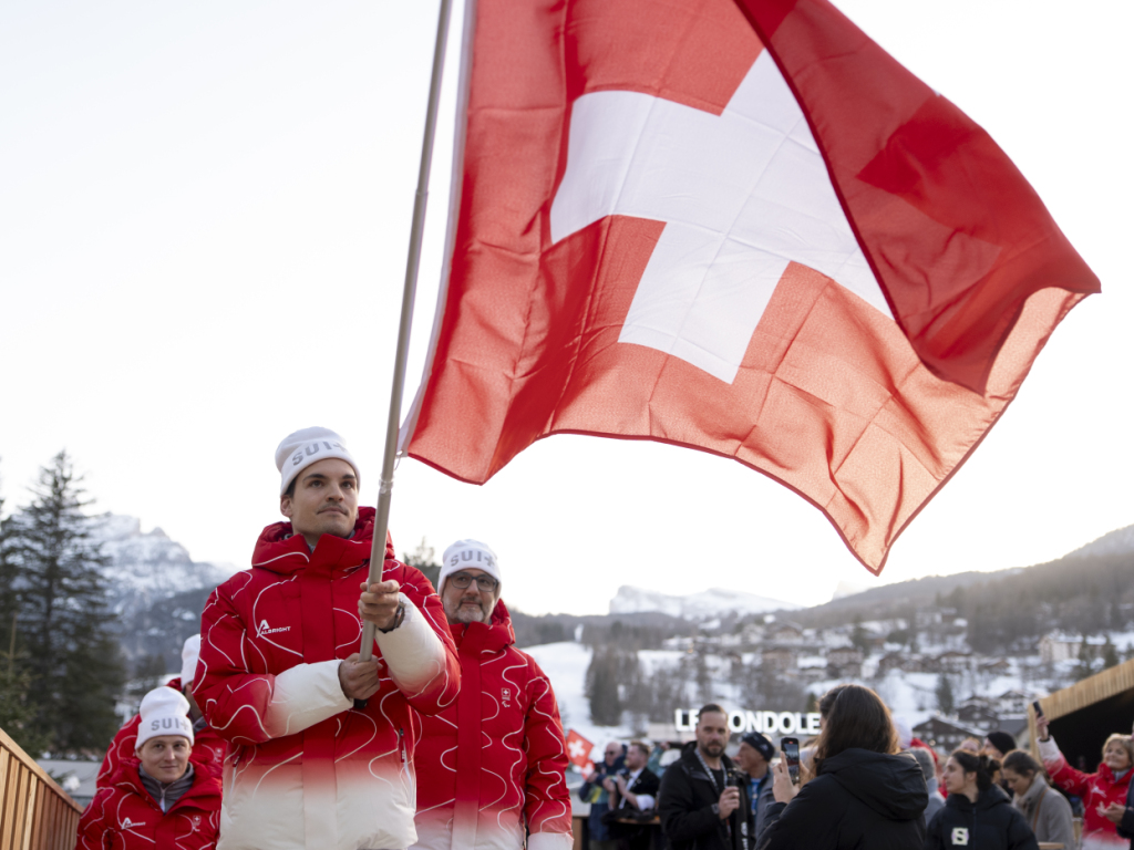 A la House of Switzerland, une petite cérémonie a été organisée à 17h30 à la place de la cérémonie officielle. Sur les notes du classique italien "Felicità", qui chante le bonheur sous toutes ses facettes, la délégation, menée par le porte-drapeau Théo Gmür, est montée sur scène. Peu après, la conseillère fédérale Elisabeth Baume-Schneider a également été accueillie.