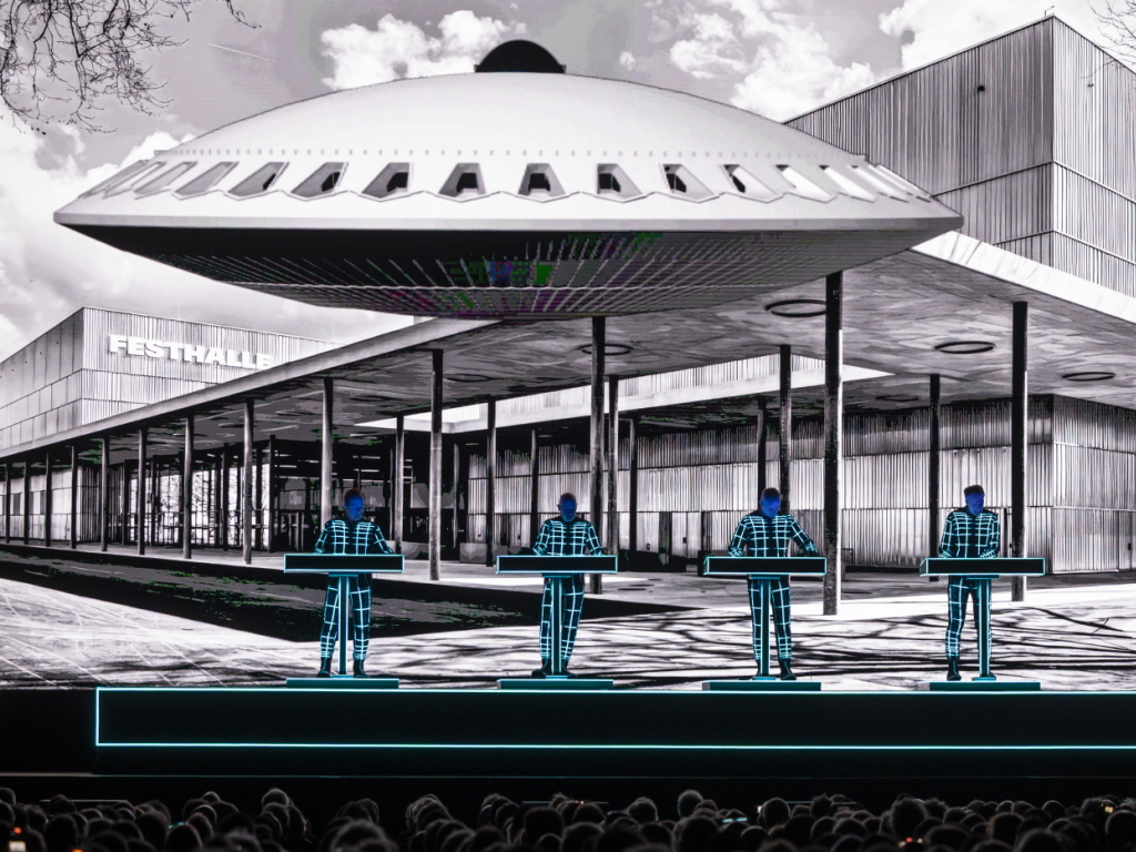 Pionnier de la musique électronique, le groupe allemand Kraftwerk a proposé un spectacle multimédia dans la nouvelle Festhalle de Berne. Il y a entraîné le public dans un voyage à travers des éléments fluorescents, des images en 3D et des sons robotiques