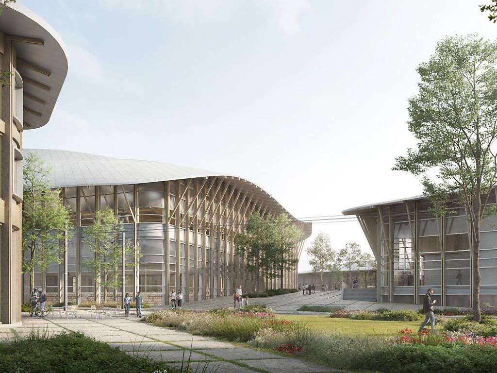 Le projet lauréat du futur centre sportif et culturel des Cherpines a été dévoilé lundi à Plan-les-Ouates. Cette infrastructure comprendra une piscine olympique couverte, un bassin extérieur, une patinoire, des terrains de badminton, de tennis, de squash et de padel ainsi qu'un mur de grimpe.