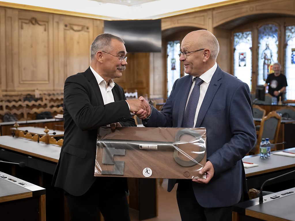 Le conseiller d'Etat Jean-François Steiert, en charge des infrastructures, lui a redonné symboliquement la grande clé du bâtiment, clé en chocolat, un objet qu'il avait reçu il y a bientôt trois ans des mains du député UDC Roland Mesoz, alors président du législatif. L'autorité suprême a ainsi repris possession des lieux.