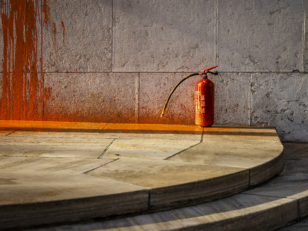 Les sympathisants ont utilisé des extincteurs et de la peinture lavable à l'eau, a communiqué Renovate Switzerland. Ils sont actuellement au poste pour interrogatoire.