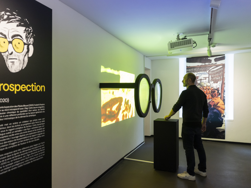 L'exposition "Inside Peeters" est à découvrir jusqu'au 3 janvier 2027. Elle se déploie au travers de sept modules thématiques qui permettent d'approcher l'oeuvre de l'artiste ainsi que différentes facettes de l'histoire de la bande dessinée.