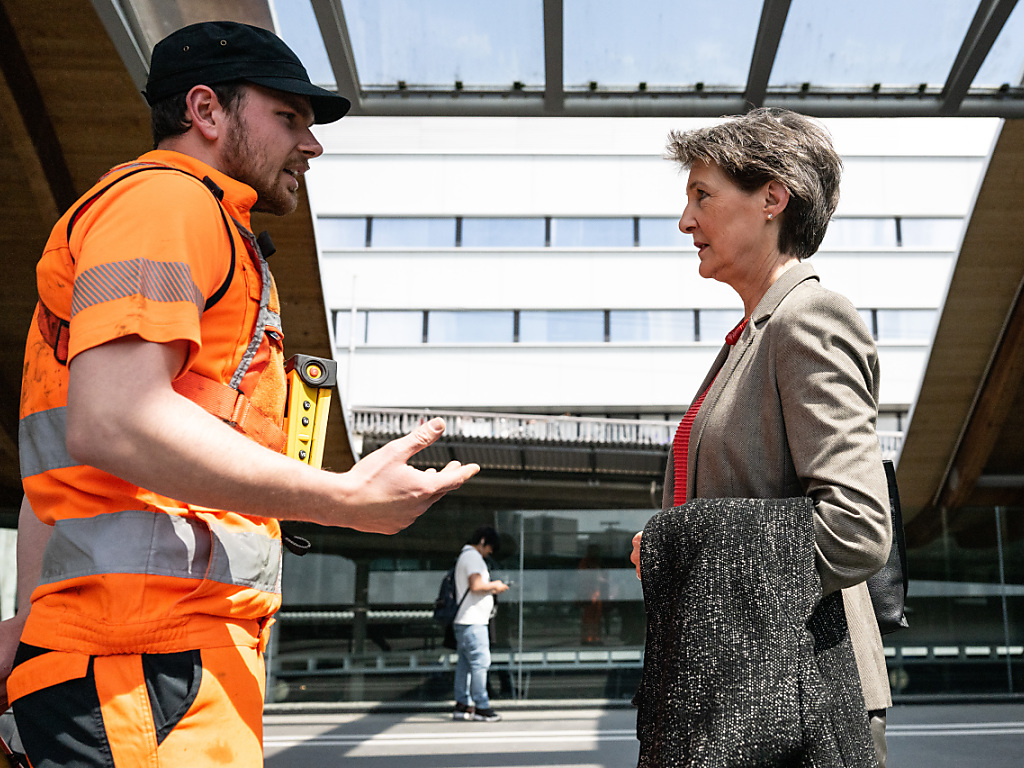 Simonetta Sommaruga s’est rendue samedi à la gare de Berne pour rencontrer trois employés à la manoeuvre. Les discussions ont porté sur les conditions de travail parfois difficiles et sur les défis que le personnel doit affronter avec l’automatisation des systèmes.